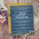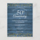 Con delicadas confetis de corazones de oro sobre un fondo de madera rústica azul. Personaliza con la información de tu aniversario de oro de cincuenta años en tipografía chic para guardar la fecha. Diseñado por Thisisnotme©