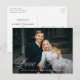 ¿Necesitas posponer la fecha de tu boda? Nuestras elegantes tarjetas de aplazamiento de boda son perfectas para notificar a tus invitados la nueva fecha. La tarjeta de cambio de fecha presenta "El amor es paciente" en una superposición de letra caligráfica blanca con tu foto de compromiso horizontal. Personaliza la tarjeta agregando tus nombres, dirección de devolución, detalles de la boda, sitio web de la boda, etc.