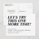 Intentemos esto de nuevo una vez más Cambiar la fecha Corazones Tipografía de fuente de escritura moderna Anuncio de aplazamiento de la boda Tarjeta postal