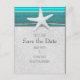 Tarjeta postal Aqua Azul y Estrella de Mar Plateada Guardar Fecha de Playa.