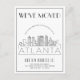 Una tarjeta postal de anuncio de mudanza de estilo deco moderno único para la hermosa ciudad de Atlanta, Georgia. Esta tarjeta presenta una ilustración estilizada de la silueta única de la ciudad con su nombre debajo. A esto le sigue la información de su dirección en un estilo de línea abierta coincidente. Todos los elementos individuales de la tarjeta están desbloqueados, así que siéntase libre de cambiar o agregar cualquier detalle necesario utilizando la función de personalización.