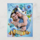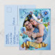 Ramo de acianos en aquarela azul envueltos en un marco de foto de papel creativo para personalizar. Este diseño de papelería moderna es perfecto para cualquier celebración al aire libre en un jardín de verano como una boda.
