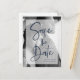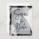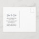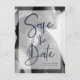 Estas modernas y elegantes tarjetas de guardar la fecha de boda presentan su propia foto personal que cubre completamente el fondo. Una superposición blanca transparente contiene tipografía de letra script de moda en azul marino, y hay más espacio para su información en el reverso de la tarjeta. Un aspecto glamuroso y elegante que sus invitados amarán.