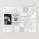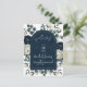 Postal De Anuncios Azul Oscuro y Blanco Moderno Floral Verde Fecha de