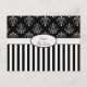 Elegancia clásica en rayas blancas y negras y patrón barroco con un lugar para agregar su nombre o monograma, o lo que desee. Ideal para bodas.
