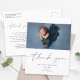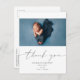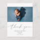 La caligrafía de escritura moderna y elegante es GRACIAS por tu familia o foto de bebé favorita junto con el nombre y la fecha de nacimiento de tu hijo, la hora de llegada y el peso de una postal minimalista perfecta para enviar a tu familia y amigos. En la parte posterior hay espacio para la dirección de retorno y el mensaje de personalizado.