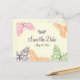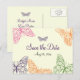 Delicado esbozado a mano, mariposas en vuelo decoran esta postal Guardar la fecha. Esto forma parte de la colección completa de bodas Besos de mariposa, y también está disponible como imán.