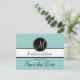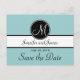 Elegante, sencillo, azul, negro y blanco Monograma moderno Guardar las postales de fecha. Elke Clarke © Estas postales de invitación boda se muestran con un fondo azul claro, un monograma blanco inicial en una etiqueta de círculo negro y nombres de novias y novios en una franja blanca y negra. Personalizar con nombres de novias y novios y texto de invitación de su boda, fecha inicial de monograma y fecha de boda usando las instrucciones de menú fáciles de usar de Zazzle. Este sencillo pero elegante diseño inicial monograma funciona para todas las letras del alfabeto y es totalmente personalizable. Para otras combinaciones de colores, póngase en contacto con luxuryweddinginvitations@gmail.com