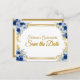 Postal De Anuncios Blue & Gold Floral Save the Date