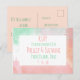 Una tarjeta de respuesta de acuarela tropical moderna, elegante y bonita en coral de moda, melocotón y verde menta neo, es perfecta para temas de boda en la isla y en la playa. Esta tarjeta postal es una opción económica para bodas con un presupuesto ajustado que es asequible sin parecer barata y es fácil de personalizar. Colóquela en el sobre con las invitaciones planas a juego y al agregar franqueo de devolución prepagado puede hacer que sea fácil para sus invitados responder simplemente marcando su respuesta y dejándola en el correo para que sepa cuántos asistentes planificar con anticipación. Esta es una buena opción para reuniones de boda pequeñas o grandes.