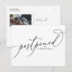 ¡Cambia la fecha! Anuncia a tu familia y amigos el aplazamiento de tu boda con esta tarjeta postal de cambio de fecha. Cuenta con elegante letra y tipografía sencilla. Personalízala añadiendo tu foto, nombres, dirección y otros detalles. Esta tarjeta de cambio de fecha también será perfecta como anuncio de fuga de enamorados.