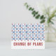 Este anuncio de posposición o cambio de fecha de boda inspirado en el Mediterráneo o México presenta bordes de baldosas españolas tradicionales llamativos y de moda en azul marino y rojo merlot.