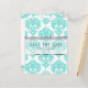 Tarjeta Postal de Boda Chic de Damasco Verde Azul y Blanco Guardar la Fecha. Personalice con cualquier texto.