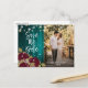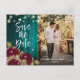 Tarjetas postales de foto de guardar la fecha de boda rústica de borgoña y turquesa con rosas en un fondo de madera ideales para una boda rústica de borgoña y turquesa.