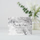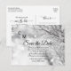 Elegantes y modernas tarjetas postales de GUARDAR LA FECHA para enviar a sus invitados. Caligrafía de guión negro con escena de invierno encantado. Plantillas personalizadas en línea para facilitar la edición. Agregue su texto en la parte delantera y trasera de la tarjeta. Póngase en contacto con el diseñador para solicitudes especiales.