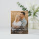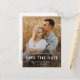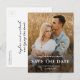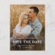 Simple Script Names Photo Wedding Guarda la tarjeta de fecha con foto de sangrado completo y tipografía superpuesta en el frente. La parte posterior es una postal que se puede enviar por correo con detalles adicionales. Haga clic en el botón de edición para personalizar de este diseño.