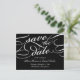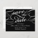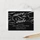 Elegante guardar las postales de fecha en blanco y negro clásico con grabado de caligrafía embellecido para un aspecto clásico y formal. Personalice el lado inverso con los detalles de su boda, incluidos nombres, fecha, ubicación e información adicional como el sitio web de su boda. Espacio proporcionado para su dirección de retorno preimpresa.