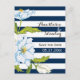 Postal De Anuncios Boda de rayas azules oscuras y flores Save the Dat