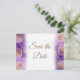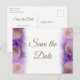 Un hermoso diseño floral abstracto de rosas en colores lila y dorado. Hay una plantilla fácil de editar para los detalles de su boda. Los colores son amatista, púrpura, rosa y dorado. La obra de arte original fue hecha usando tinta al alcohol. Tarjeta postal de anuncio de boda de Rosas Lila Abstractas Preciosas. La obra de arte original fue hecha por la artista australiana Pauline Benjes.
