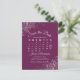 Esta hermosa postal de "salva la fecha" dará a tus amigos y familiares un aviso anticipado de tu próxima boda. Cuenta con un diseño inteligente con un calendario personalizado donde puedes poner un corazón alrededor de la fecha de tu boda. El fondo es de color púrpura cassis o un color de baya magenta, con texto gris claro y acentos decorativos de falso foil gris plateado en las esquinas. La parte trasera tiene un gráfico lindo que dice "pencil us in" con espacio para tu propia nota personalizada.