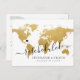 Tarjeta postal de boda de destino en mapa mundial dorado con texto totalmente editable para que puedas explicar tanto o tan poco como quieras, y proporcionar un sitio web para que los invitados revisen actualizaciones y cambios. —— Haz clic en PERSONALIZAR MÁS para mover el corazón, cambiar el fondo y el color del texto, cambiar las fuentes o reorganizar todo y crear tu propio diseño utilizando nuestro arte de mapa de pan de oro falso único. —— Perfecto para ubicaciones de boda de destino tropicales, de playa, isla, ciudad, montaña y aventura en todo el mundo. ¡Consulta nuestra tienda de diseñadores para artículos coordinados!