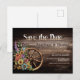 Una elegante tarjeta postal de anuncio de boda floral de madera rústica para que envíes a tus amigos y seres queridos para anunciarles la emocionante noticia de tu futura boda y darles tiempo para hacer arreglos para asistir a tu día especial.