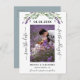 Una boda moderna Salven la tarjeta de foto de la fecha. Decorado con flores de lavanda, flores y vegetación eucaliptica. Personaliza y agrega tu foto, fecha, nombres. Parte posterior: color de fondo verde gris, diseño postal.