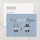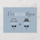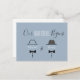 Tarjeta postal de invitación simple, minimalista y moderna de boda gay azul polvoriento para guardar la fecha, con monogramas dibujados de corbatas de lazo vintage.