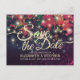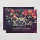 Postal De Anuncios Boda Guardar La Fecha Floral Púrpura Tela Luces