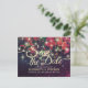 Guardar las plantillas de postales de la invitación a la boda de la fecha - Floral de color rojo de Borgoña Marsala con luces de cadena y Relieve metalizado dorado falso sobre fondo de luces de broche morado. ¡Un Diseño Perfecto Para Tu Gran Día! Todos Los Estilo De Texto, Los Colores Y Los Tamaños Se Pueden Modificar Para Ajustarse A Sus Necesidades.
