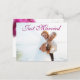 Tarjeta postal floral simple pero elegante con una foto de plantilla para reemplazar con tu propia foto de boda y anunciar a familiares y amigos que nos casamos.
