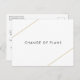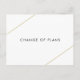 Tarjeta postal de anuncio de aplazamiento de boda geométrica moderna con dos líneas doradas, una en la parte superior izquierda y otra en la parte inferior derecha junto con el título, "Cambio de planes" sobre un fondo blanco. Un diseño minimalista que sigue siendo elegante y sofisticado. Estas tarjetas de anuncio son una excelente manera de informar a sus invitados que su boda ha sido pospuesta.