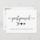 Infórmele a sus huéspedes que su fecha de boda ha sido pospuesta con esta moda moderna invitación de aplazamiento de bodas. "pospuesto" está escrito en tipografía elegante y debajo, apuntando a un futuro de amor, está una flecha y un corazón. Puede personalizar sus nombres y la invitación de postergación en el frente y proporcionar más detalles al reverso de una nueva fecha o si se abrirá una nueva fecha cuando la tenga.