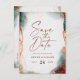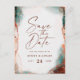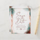 Tarjetas Postales de boda abstractas etéreas en acuarela Terra Cotta para guardar la fecha. Este diseño de boda moderno es hermoso y está pintado a mano con colores ricos que son perfectos para el otoño. Mostrado en la paleta de colores de boda Terracotta en: Terra Cotta Naranja Quemada, Verde Oscuro, Rosa Claro Polvoriento, Marrón Rico Siena y Beige. Con detalles de lámina de brillo metálico falso y una hermosa fuente de escritura con colas, la colección de boda de acuarela etérea seguramente hará que su boda sea memorable y hermosa.