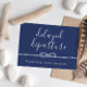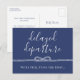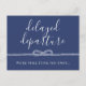 ¿Cambiaste la fecha de tu boda? Haz saber a tus invitados con esta postal azul marino con "salida retrasada" escrito en un fino guión encima de una cuerda blanca atada en el símbolo del infinito. Agrega la nueva información de tu boda en el otro lado.