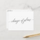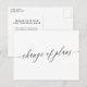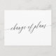 Comunique a sus invitados que la boda se ha pospuesto y déles una nueva fecha o el enlace a su sitio web para obtener más información con esta tarjeta postal en blanco y negro que presenta un script de caligrafía minimalista con cambio de planes escrito en la tarjeta de cambio de fecha. En el reverso puede escribir la nueva información.