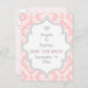Postal De Anuncios Boda rosa, blanca, gris damasco Guardar la fecha