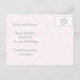 Elegante boda rosa y gris damasco Guardar la postal de la fecha. Un diseño elegante de diseño de diseño de damasco blanco y rosa suave con tu texto en un marco y un pequeño corazón gris. Contemporáneo pero con una mirada vintage en cierto sentido. Este diseño de plantilla elegante forma parte de un conjunto de bodas y es completamente personalizable. Puede cambiar el fondo y el texto de color rosado eligiendo entre más de 200 colores de la gráfica de color Zazzle.