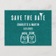 Bodas rústicas minimalistas salven la postal de fecha con caligrafía moderna ideal para una verde azulada fiesta rústica de campo/patio/establo de boda.