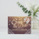 Guardar las plantillas de postales de la invitación a la boda de la fecha - Relieve metalizado dorado falso Script Elegante Floral y String Lughts con decoración de encaje sobre fondo de madera rústica. Todos Los Estilo De Texto, Los Colores Y Los Tamaños Se Pueden Modificar Para Ajustarse A Sus Necesidades.