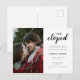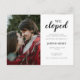 Dile al mundo que te has fugado en este simple anuncio de boda minimalista en fuente caligráfica que dice "Nos fugamos". Personalízalo con los detalles de tu recepción de boda y foto de pareja.