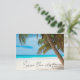 Esta hermosa playa tropical salva las postales de fecha boda son perfectas para tu playa tropical o tu boda de destino junto al océano. Personalizar el dorso de la postal con los datos de su boda.