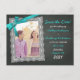 Cartel, marco de encaje vintage, y boda de fotos de cinta y proa turquesa o verde azulada ahorran la postal de fecha. Cambia la foto de compromiso y el texto de tu propio texto. Diseño sencillo pero a la vez bonito y moderno. Nota se trata de un diseño plano e impreso sin ningún tipo de embellecimiento en relieve o en 3D. La cinta y el arco están impresos en la postal.