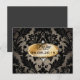 Postal De Anuncios boda vintage damasco negro oro ahorrar la fecha