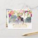 Tarjetas postales de PixDezines boho acuarela floral verano acentuadas con hoja de oro falso "guarda nuestra fecha" fuente de letra script elegante y fina y tus fotos de compromiso en el anverso y reverso. Copyright © 2008-2017 PixDezines.com™ y PixDezines™ en zazzle.com. Todos los derechos reservados.