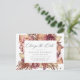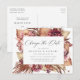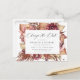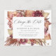 ¿Necesitas cambiar la fecha de tu boda? Nuestras exclusivas postales de cambio de fecha de boda son perfectas para notificar a tus invitados la nueva fecha de tu boda. La tarjeta de cambio de fecha presenta "Cambiar la Fecha" en una moderna caligrafía con un borde de flores de acuarela de color burdeos, rosa y coral con follaje del desierto en tonos terrosos de óxido, marrón y beige. Personaliza la postal agregando tus nombres, dirección de respuesta, detalles de la boda, sitio web de la boda, etc.