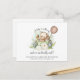 Un oso de peluca elegante y caprichoso, con invitación de embarazo en globo, de color marrón neutro y verde sabio con flores, y la expresión: "podemos esperar con ansiedad". Un bonito estilo de moda para tu gran invitación. El tipo serif moderno contrastaba con la tipografía de la escritura. Estilo neutro de género marrón y verde sabio.