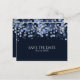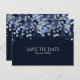 Postal De Anuncios Bokeh azul de medianoche Boda Guardar la fecha