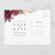 Postal De Anuncios Burgundy rústico boho floral guardar la fecha