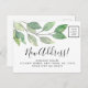 This business moving announcement postcard features minimalist watercolor greenery, stylish script typography, and space for your logo.